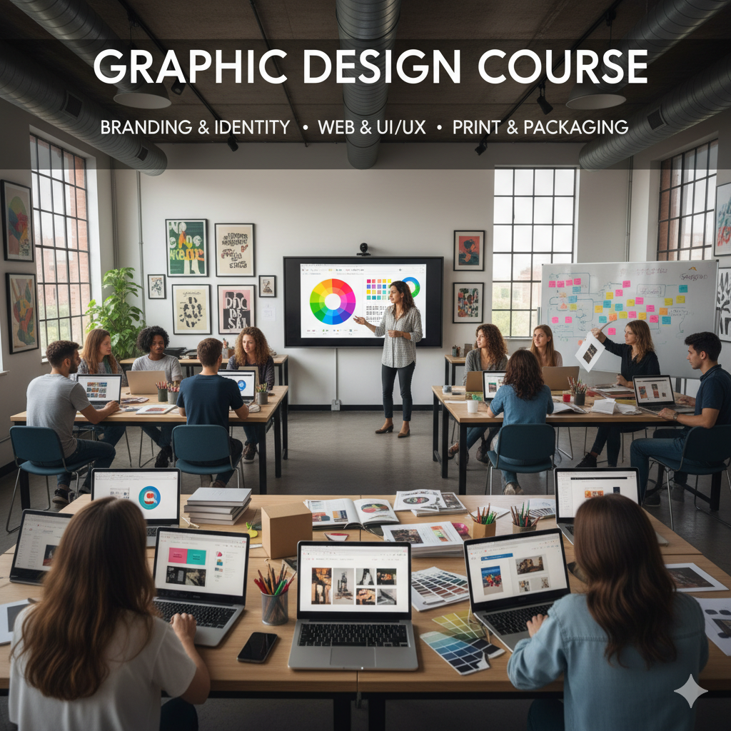 A graphic design course provides a comprehensive overview of visual communication, combining creative principles with technical skills to produce compelling visuals for digital and print media. Courses cover fundamental design principles like typography and color theory, and teach software like Adobe Photoshop and Illustrator. Students learn to develop branding, layouts, and graphics for a variety of applications such as advertising, web design, and packaging.