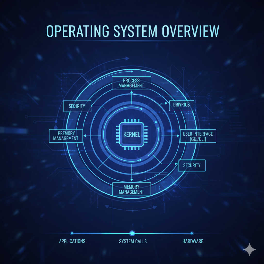 An operating system (OS) course provides a comprehensive overview of how operating systems manage computer hardware and software. Key topics include the functions and structure of an OS, process management (including scheduling, synchronization, and communication), memory management, and file systems. The course also covers input/output (I/O) management, deadlock handling, virtual memory, and security, often through a combination of theoretical concepts and practical problem-solving.