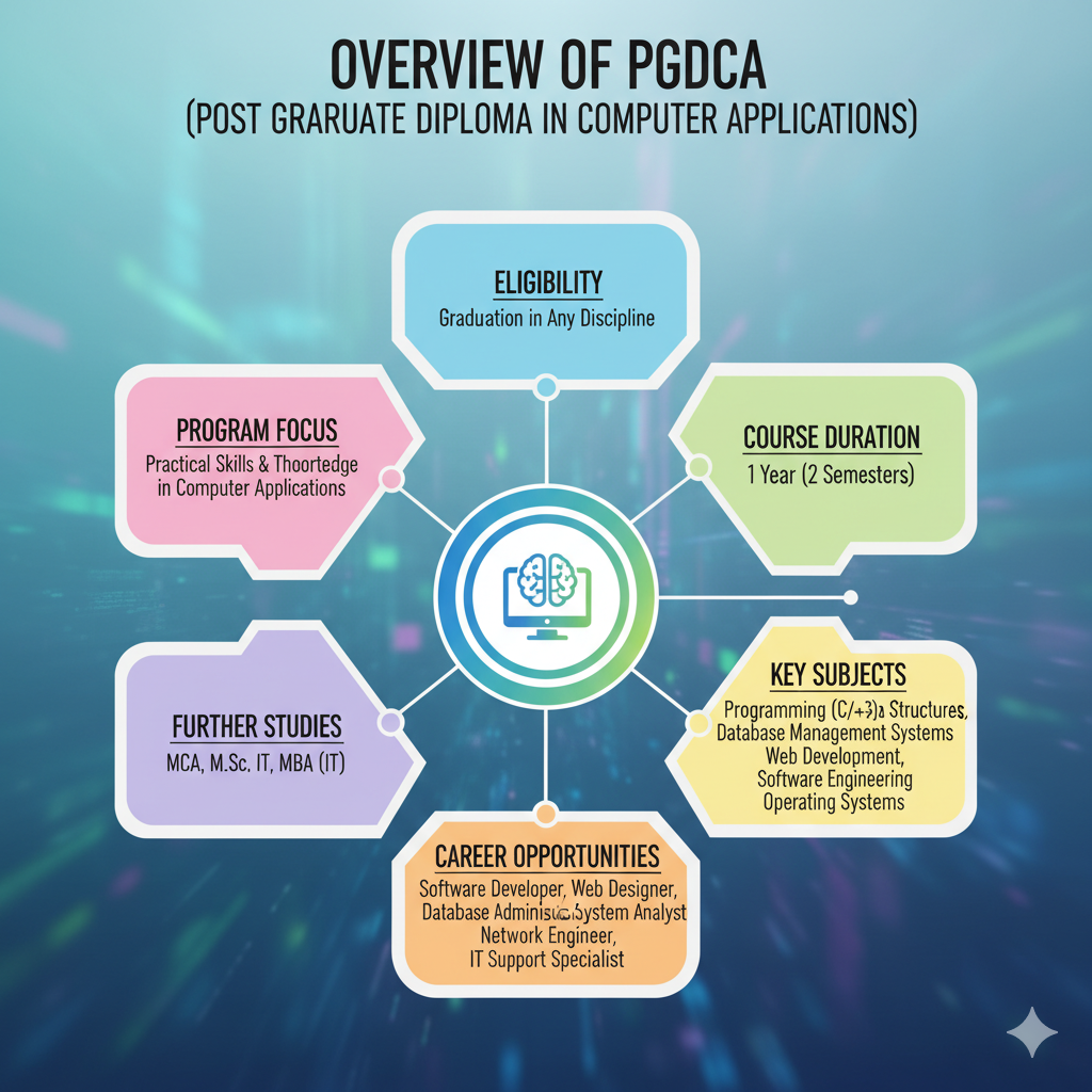 PGDCA is a one-year postgraduate diploma course designed for individuals who want to gain a strong foundation in computer applications. It's particularly beneficial for those from non-computer backgrounds looking to enter the IT field